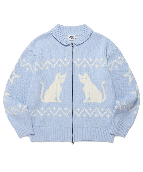 ↣ 상품명 : CATS ZIP UP CARDIGAN [SKY BLUE]